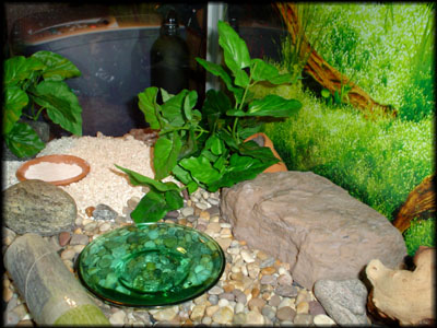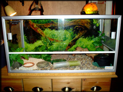 Skillnaden på ett akvarium och ett riktigt terrarium är att terrariet har ventilationsgaller. Akvariet blir lätt väldigt "tätt" och växthusliknande eftersom de har en glasskiva som ligger på taket.