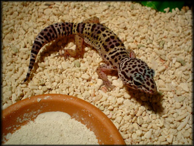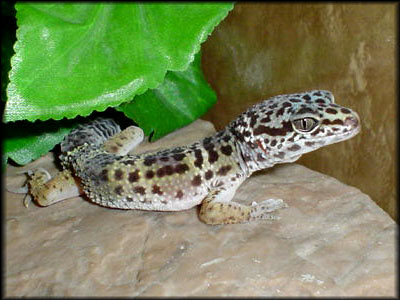 Leopardgecko (Eublepharis macularius) är en köttätande nattaktiv ödla som härstammar från torra klippiga områden i Afghanistan, Pakistan och norra Indien. Den lever i torra områden, men har ett stort behov av fuktiga platser.