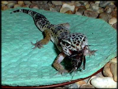 Dräktiga leopardgeckos och ungar ska utfodras minst varannan dag. Vuxna leopardgeckos ska utfodras minst 2 gånger i veckan. Eftersom geckon är ett nattdjur kan det vara en bra idé att mata den på kvällen eller natten.