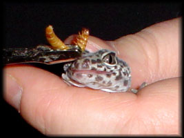 Om det har gått lång tid sen geckon åt senast, så kan magsäcken ha krympt en aning. Då kan du börja med att ge den vätska med hjälp av en spruta, och inte lika många larver. Tänk på att geckon även måste få i sig vitaminer och kalk! Kan också ges med hjälp av spruta, utblandat med ett par droppar vatten.