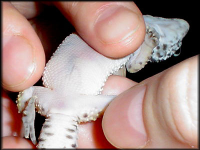 Man kan se på färgen på ägget om ägget är dött då det är stelt och gult. Det är viktigt att man får ut alla äggen ur geckon, annars går hon en säker död till mötes inom ett par veckor. Ägg med skal kan inte absorberas av geckon, så hon dör av äggledarinflammation.